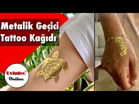 Bu videomuzda sizlere lazer yazıcı metalik tattoo kağıdı nasıl kullanılır anlatıyoruz. Bu kağıdı kullanmak için bir tonerli yazıcı ve düz transfer presi veya laminasyon cihazına ihtiyacınız var. 4 kağıtlı bir setten oluşan bu üründe ilk önce mavi dekalin üzerine tonerli yazıcından siyah çıktı alıyorsunuz, metalik filmle lamine edip sonra tattoo dekaline aktarıyorsunuz. Artından cilde zararsız tutkal kağıdını yapıştırıp istediniz parçaları kesiyorsunuz. Cilde yapıştırıp, ıslatıp, taşıyıcı kağıdını kaldırıyorsunuz. Videoda gördüğünüz bütün ürünlerin detaylarını aşağıdaki bağlantıları tıklayarak ürün sayfasından bulabilir, ürünleri online satın alabilirsiniz.